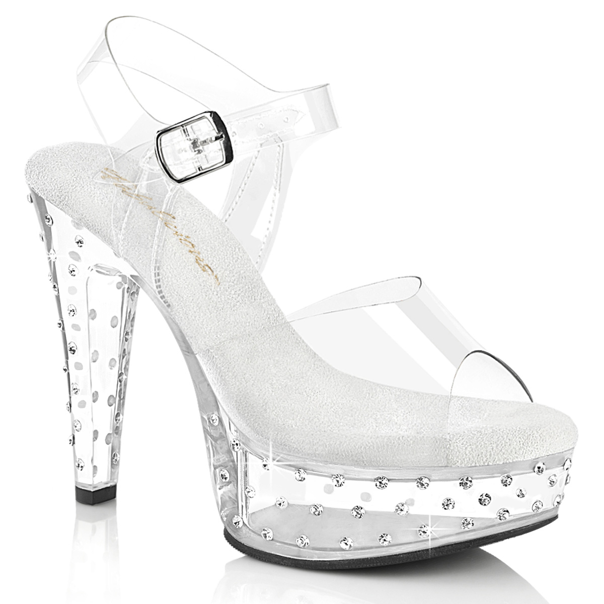 5"" (127mm) Heel, 1 3/4"" (45mm) Platform Ankle Strap Sandal Featuring Rhinestones Studded Heel and Platform Bottom