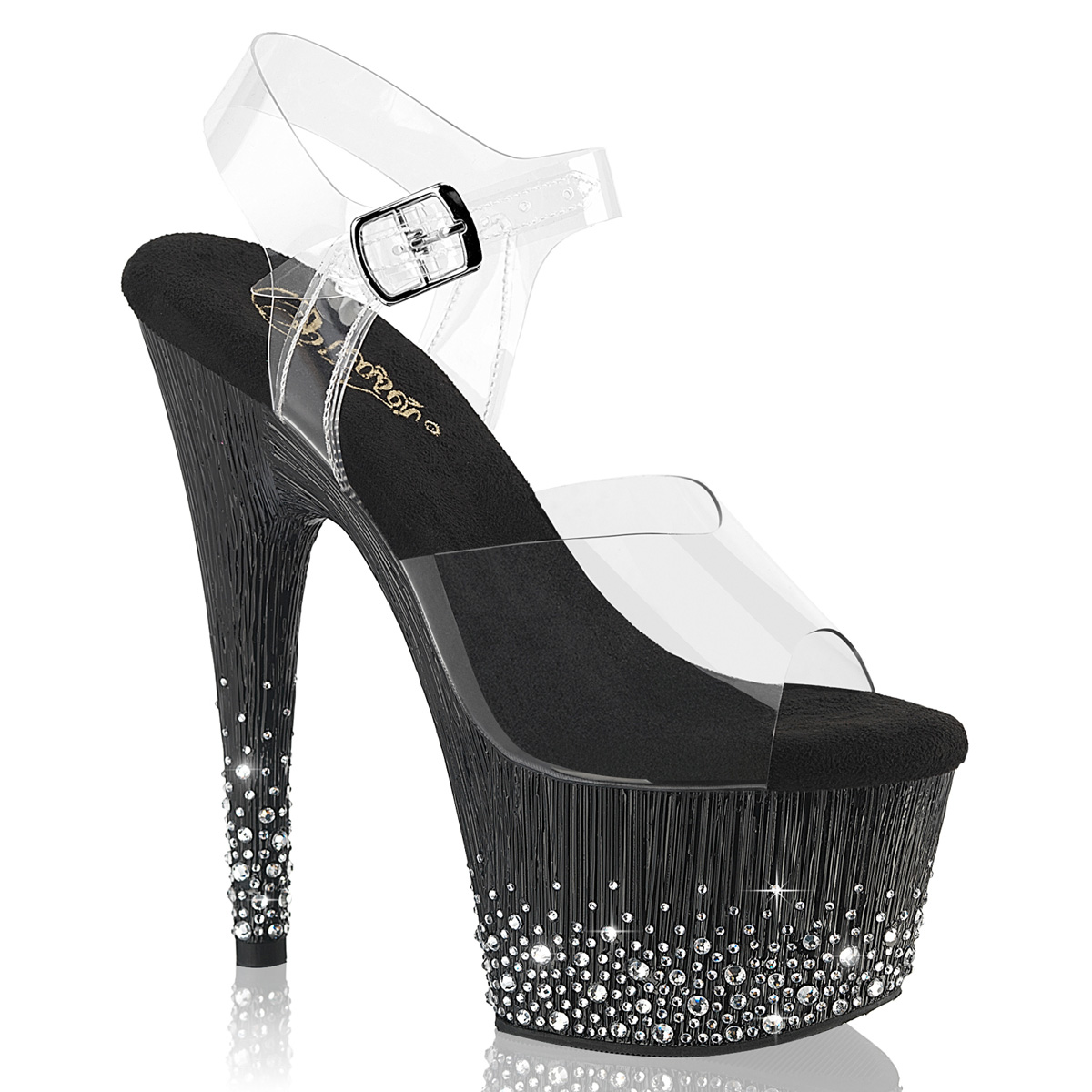 7" (178mm) Heel, 2 3/4" (70mm) Platform Ankle Strap Sandal Featuring Sprinkle Rhinestone Design on the Lower Half of the Platform Bottom & Heel