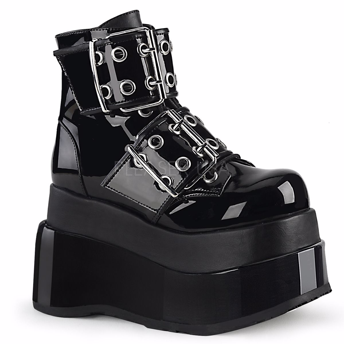 4 1/2" (114mm) Tiered Platform Lace-Up Front Ankle Boot Featuring Double Grommet Buckle Straps, Inside Zip Closure