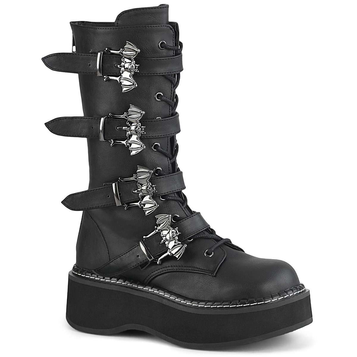 2" (51mm) Platform Lace-Up Front Mid-Calf Boot Featuring Bat Buckle Straps, Back Metal Zip Closure