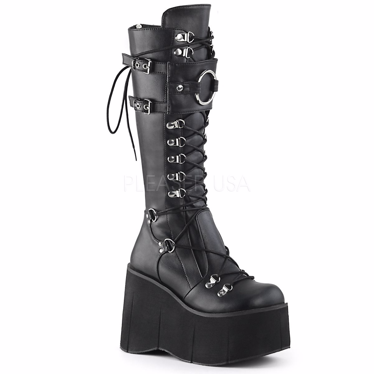 4 1/2 inch (114mm) Platform D-Ring Lace-Up Knee High Boots Featuring Adjustable Shield w/ an Oversized O-Ring, Full Length Back Metal Zip Closure