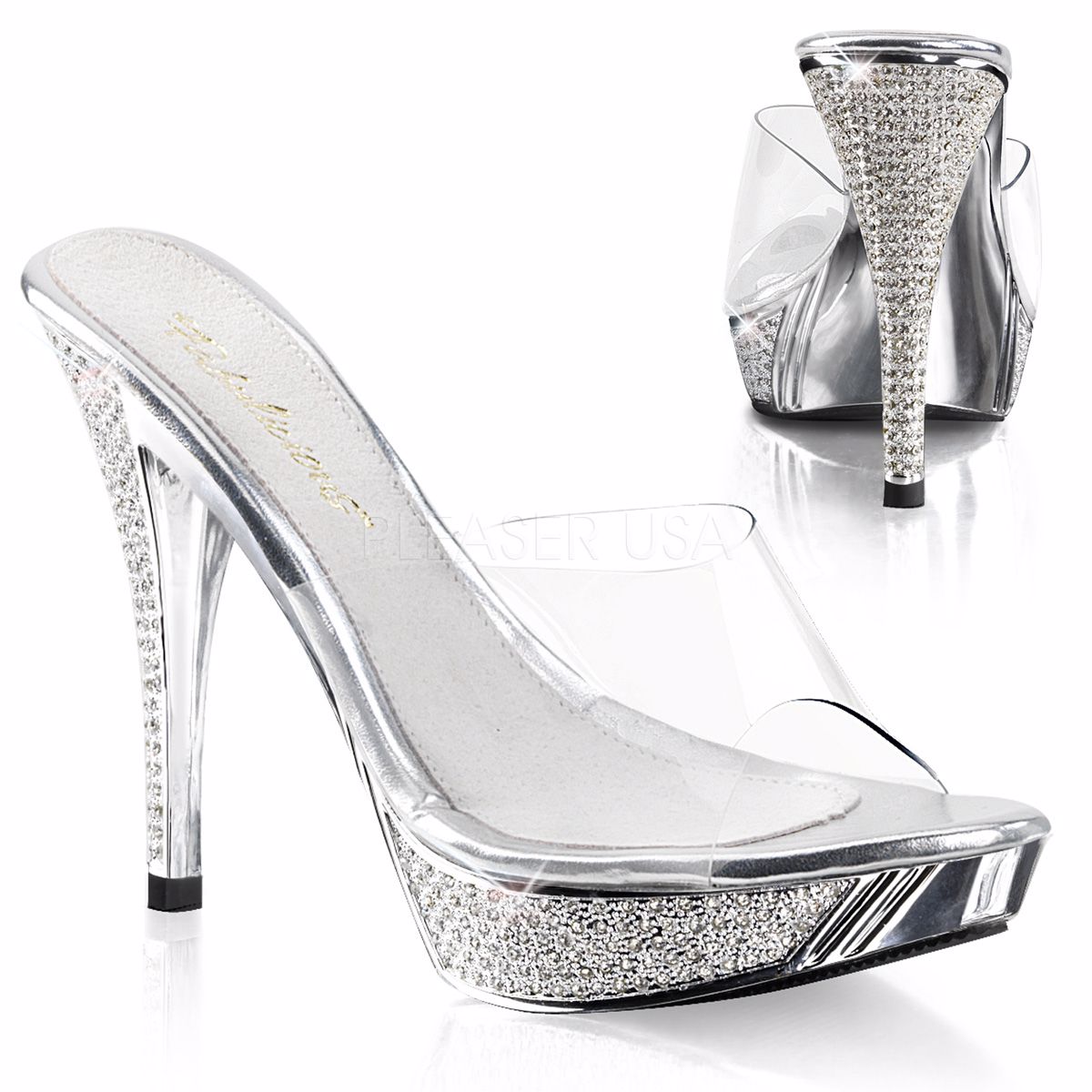 Pleaser Allure-601 Clear/Clear, 5 1/2 inch (14 cm) Heel, 1 1/2 inch (3.8 cm) Platform Slide Mule Shoes