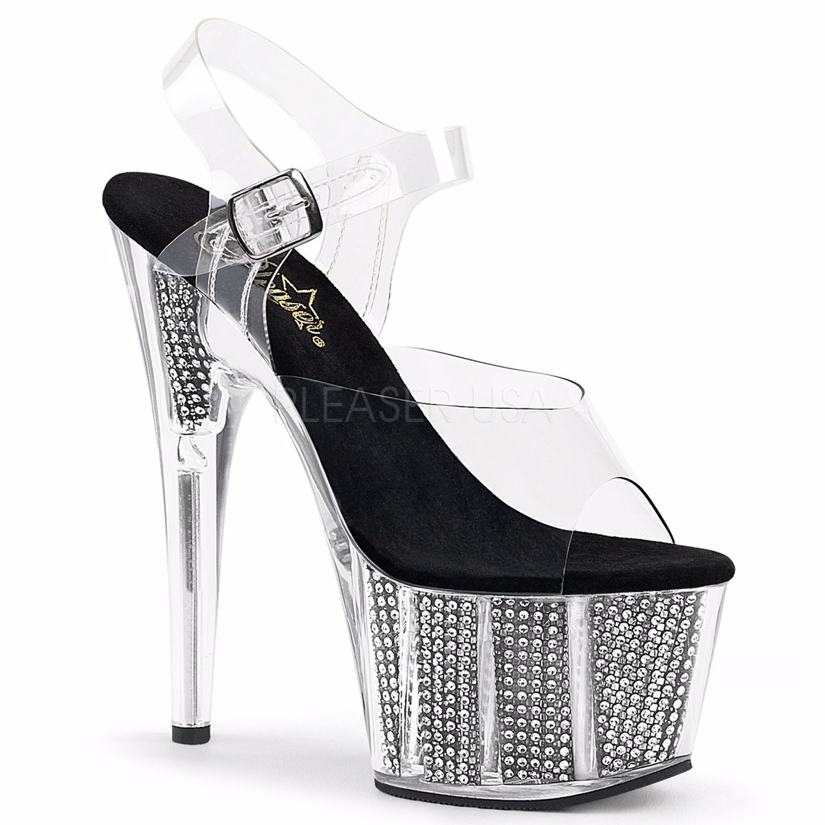 7 inch (17.8 cm) Stiletto Heel, 2 3/4 inch (7 cm) Platform Ankle Strap Sandal Featuring Simulated Rhinestone Filled Platform