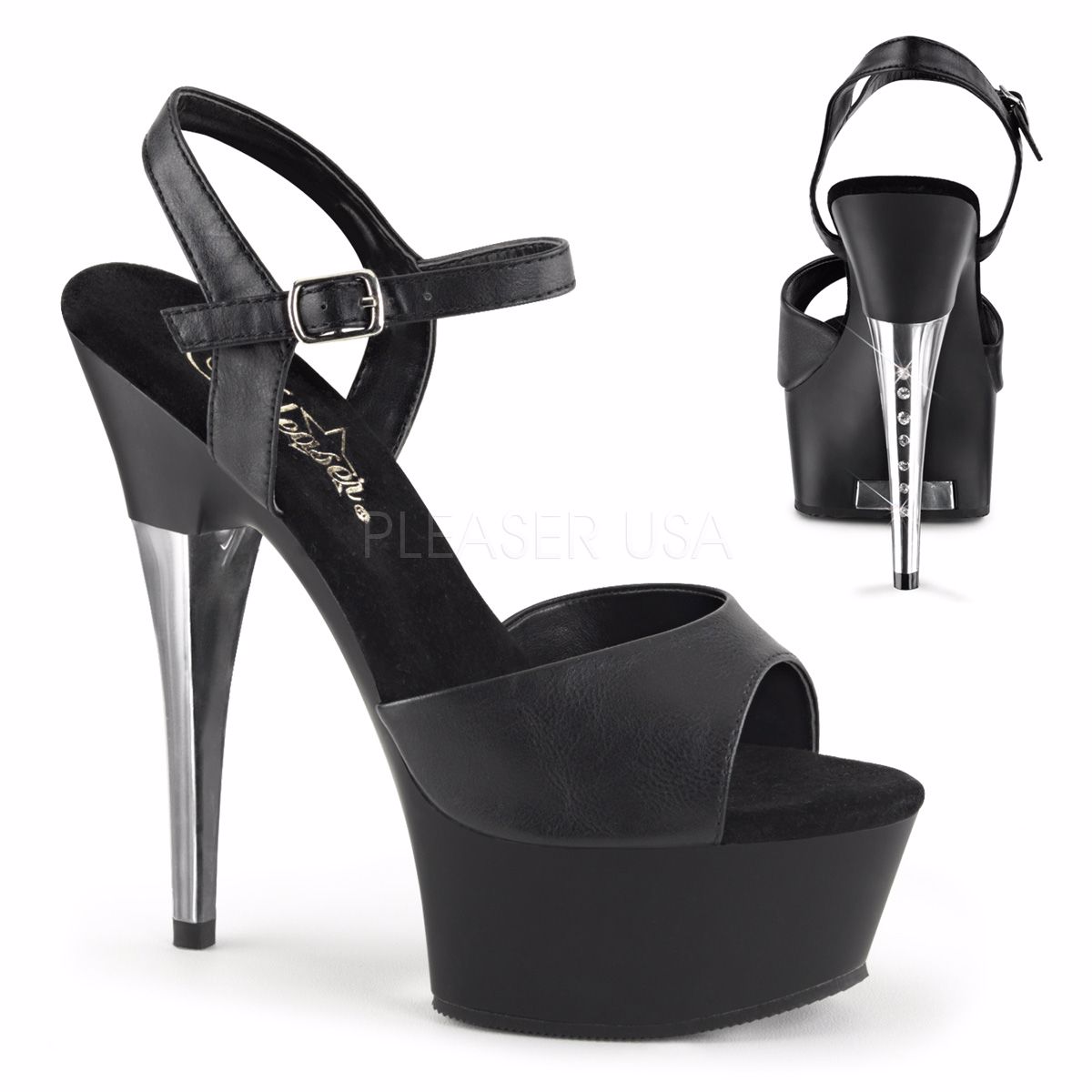 Black Faux Leather/Black Matte, 6 inch (15.2 cm) Heel, 1 3/4 inch (4.4 cm) Platform