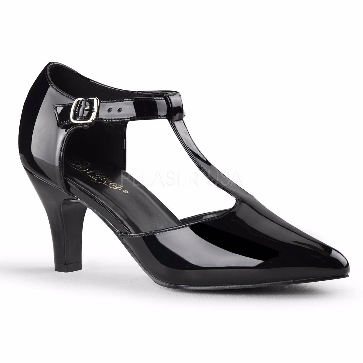 3 inch (7.6 cm) Block Heel D'orsay Style T-Strap Pump