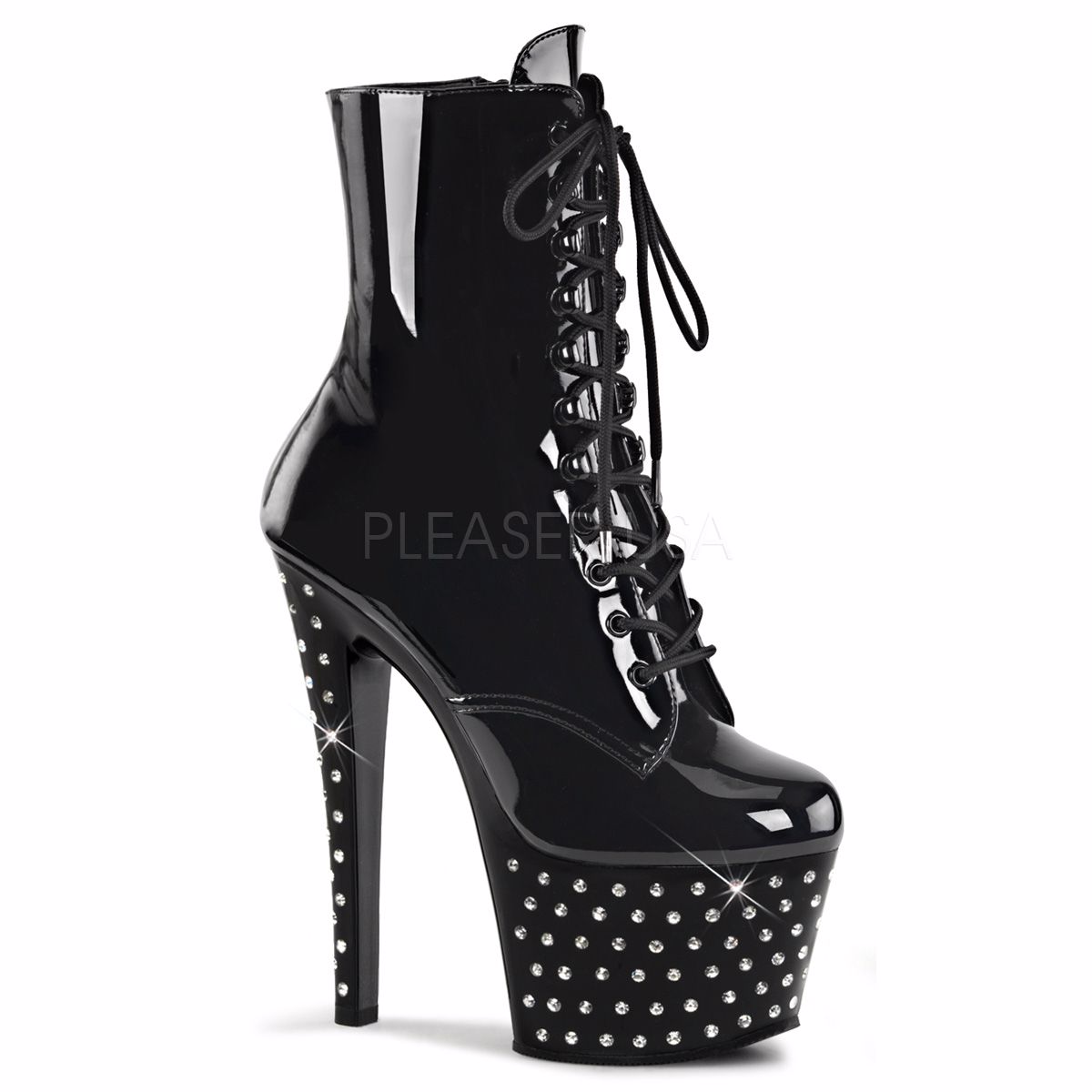 7 inch (17.8 cm) Heel, 2 3/4 inch (7 cm) Platform Front Lace-Up Ankle Boot Featuring Rhinestones Studded on Platform
